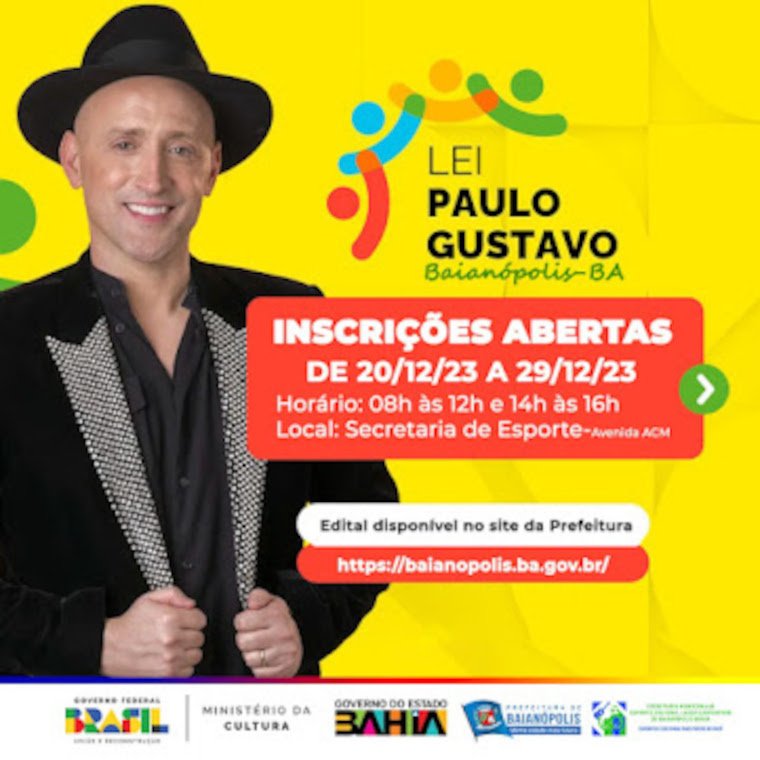 A Câmara de Baianópolis aprovou o projeto de Lei Paulo Gustavo, e após a publicação no diário oficial, agora a execução é da secretaria de Esportes e Cultura, destinando recursos aos artistas e agentes culturais.