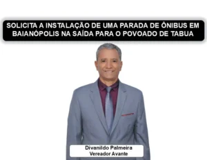 Vereador Diva Palmeira solicita a instalação de uma parada de ônibus em Baianópolis na saída para o povoado de Tabua